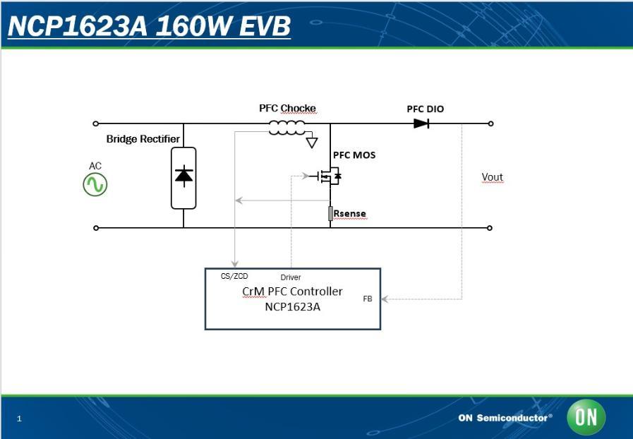 本方案基于安森美(Onsemi Semiconductor) NCP1623A替代NCP1622,本方案是利用NCP1622 160W演示板直接更换为NCP1623A而不做任何更改。安森美NCP1622是一款早期推出的CrM PFC控制器,它具备谷底同步频率折返(Valley Synchronized Frequency Fold-back, VSFF)的CrM PFC。图一显示了传统CrM与VSFF在不同负载下其切换频率对输入电压的变化。VSFF操作模式使电源供应器在不同负载情况下能够获得整体最佳效率。此外,安森美NCP1622还提供了一些实用功能:第一,NCP1622采用TSOP-6封装,以最小化PFC控制器的尺寸;第二,NCP1622集成了零电流检测(Zero Current Detection, ZCD)和电流检测功能。电流传感器线路,以提供最简化PFC线路。第三,NCP1622提供两种零电流检测(Zero Current Detection, ZCD)线路,可满足多种应用场合。第四,NCP1622提供Skip功能,使NCP1622在轻负载情况下具有良好的功耗表现。而安森美NCP1623是一款近期推出的CrM PFC控制器,除了保留上述NCP1622的功能与优点外,NCP1623还新增以下几项功能:第一,提供Follower boost功能(仅NCP1623A具备此功能),以提高低输入电压时的效率。第二,停用低睡眠模式电流功能(Disable function for low Sleep Mode current),以改善轻载或极轻载时的效率。第三,二次侧OVP保护功能,为设计者提供更多的保护功能选择。第四,使用MOSFET汲极(Drain)进行ZCD检测,以提高非辅助绕组设计的稳定性。第五,提供多种封装选择,包括TSOP-6和SOIC-8等封装供设计者选择。表二展示了NCP1623与NCP1622的主要差异。
