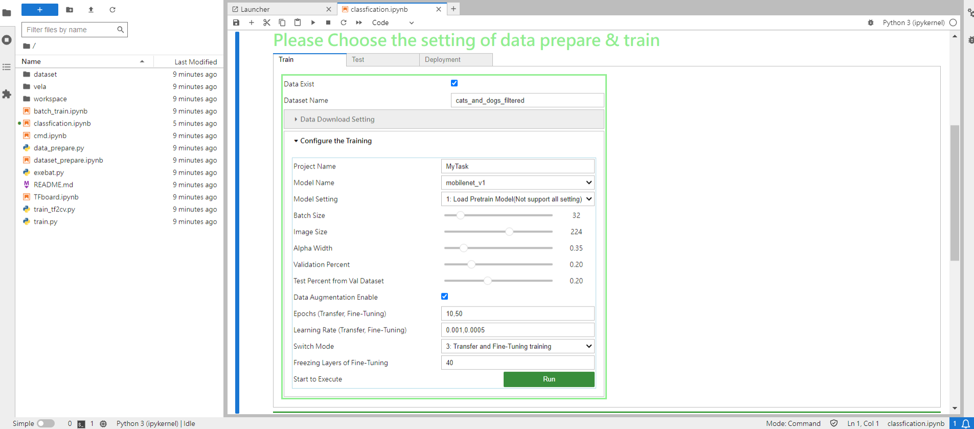 接下来可以设置相关的参数作为训练,并且点击RUN后即可开始训练