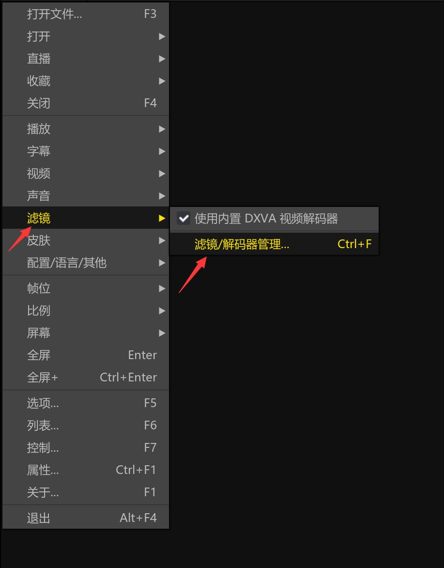 通过左上方小箭头打开菜单,找到滤镜,打开滤镜解码器管理。