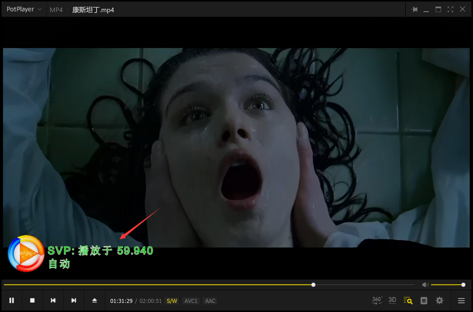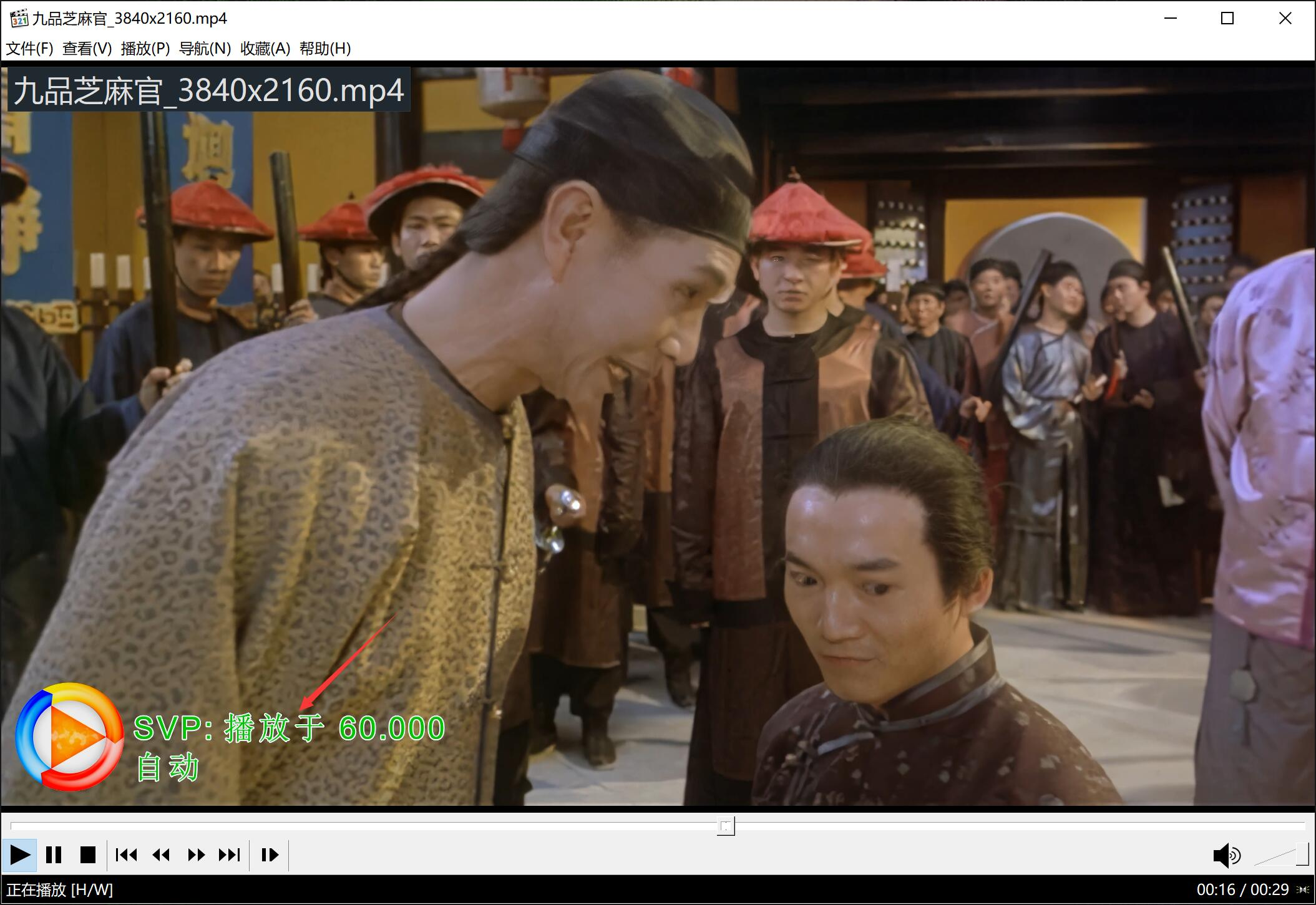正常启用的情况下,视频一打开就会在左下方显示SVP的图标,同时显示视频帧率为60FPS。这样刚刚从400p转4k的电影,就可以用60FPS播放了。一部老电影就可以享受4k,60PFS的效果了。虽然比不上现在拍的效果,但是整体提升不少。