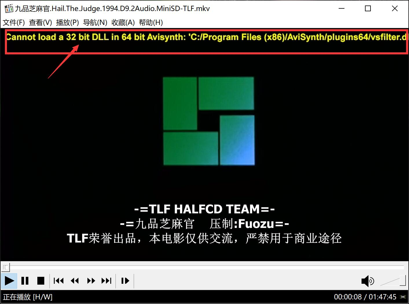 接下来就很简单了。 打开刚刚装的“MPC-HC” 播放器,把视频拖过去就好了。你有可能会遇到上面的错误,导致无法使用。这是播放器位数的问题。只要按我前面勾选的,安装64为和32位的播放器,总有一个可以用。