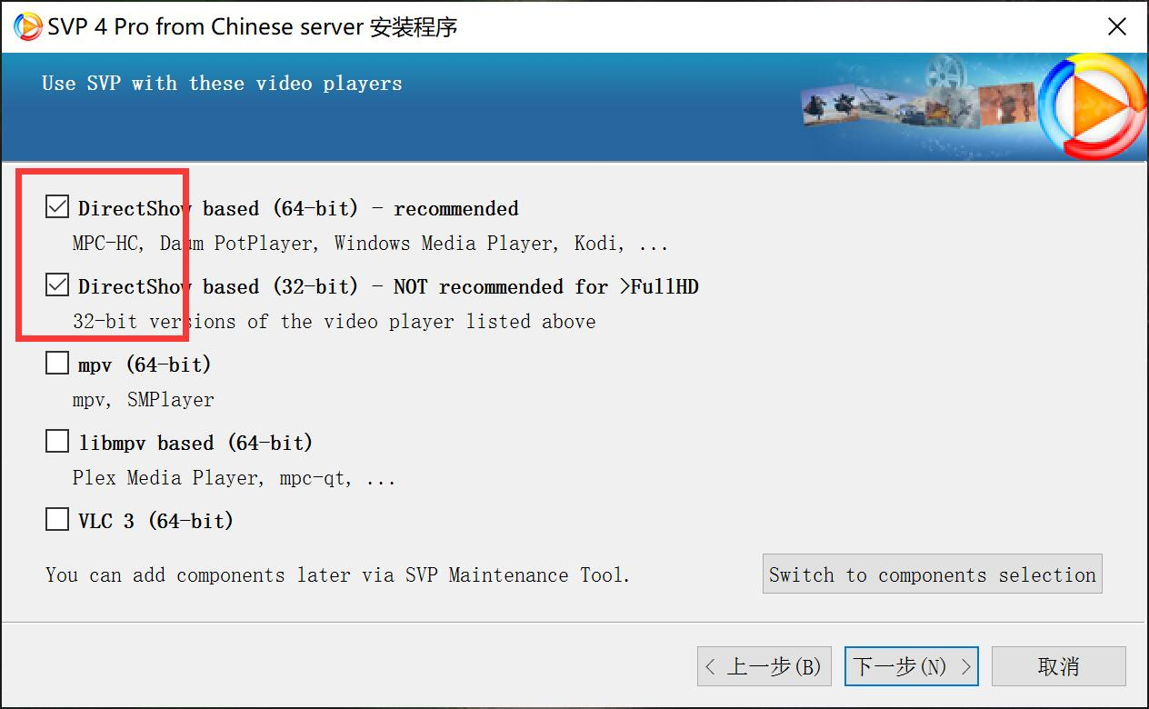 选择播放器,这里可以根据自己操作系统位 数选择,现在一般都是64位,我这里64和32全选了。