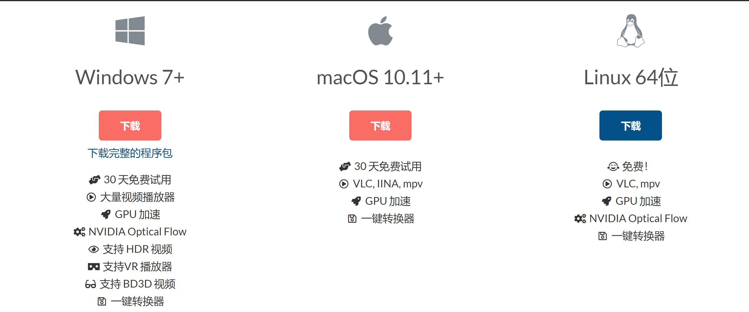 - 支持Win7+, macOS 10.11+ ,Linux64位。