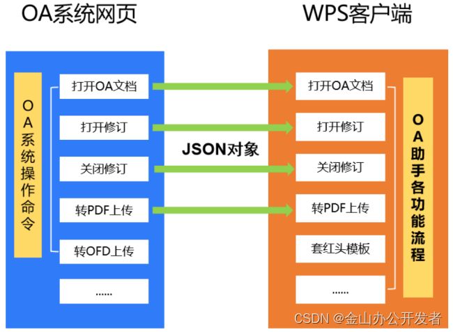 - 业务系统页面与WPS客户端交换JSON数据;