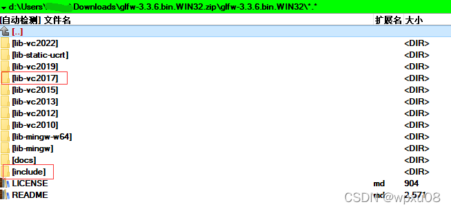 对VS2017来说,解压文件中需要安置的文件在两个文件夹中:include与lib-vc2017中,如上图所示。安置分两步: