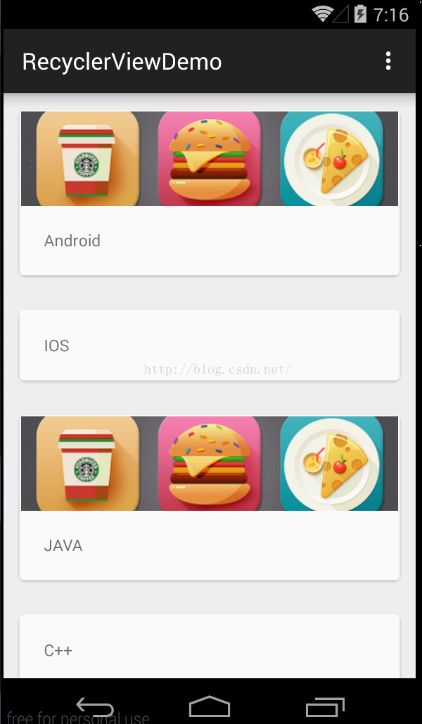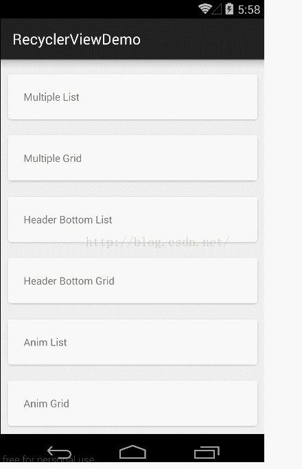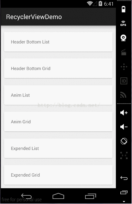 从上述例子可以看出,RecyclerView的用法并不复杂,反而更灵活好用,它将数据、排列方式、数据的展示方式都分割开来,自定义的形式也非常多,非常灵活。下方共享一个开源示例,且解决了ScrollView嵌套RecyclerView无法显示的问题: