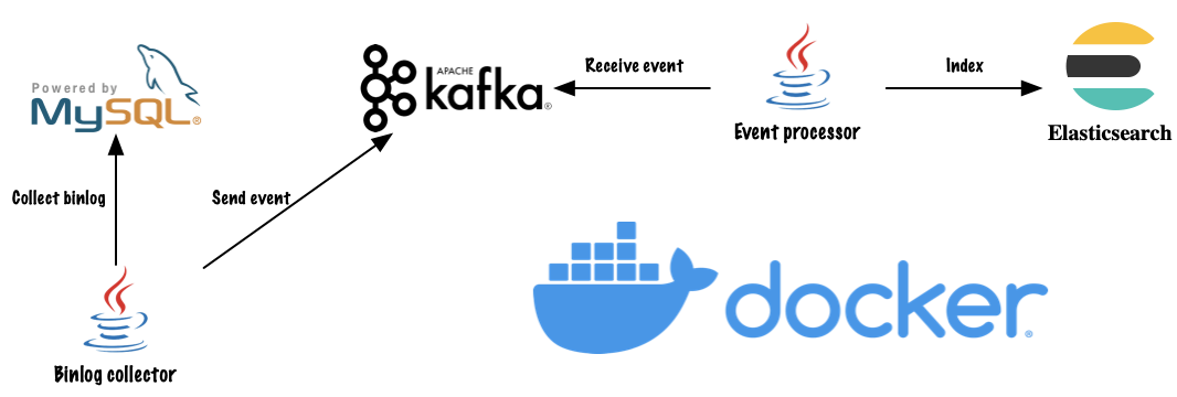 使用基于事件的流引擎,将 MySQL 数据库中的数据更改作为事件,发送到流处理服务器上,经过处理后将其转发到 Elasticsearch。🥳