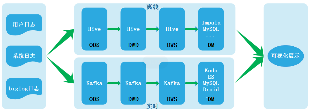 随着实时计算引擎的不断发展以及业务对于实时报表的产出需求不断膨胀,业界最近几年就一直聚焦并探索于实时数仓建设。根据数仓架构演变过程,在 Lambda 架构中含有离线处理与实时处理两条链路,其架构图如下: