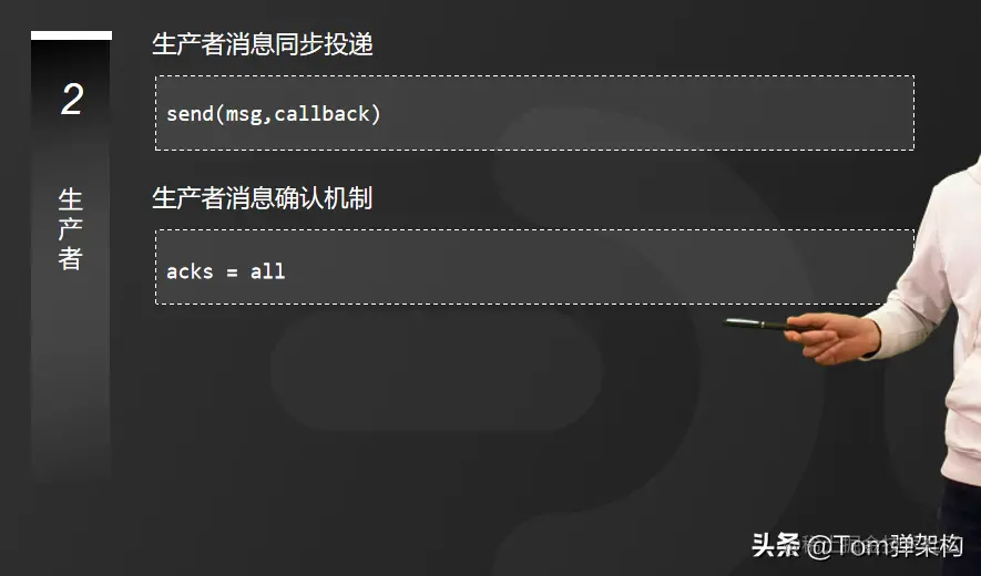 第二个,就是生产者Producer,使用带回调通知的send(msg,callback)方法,并且设置acks = all 。它的消息投递要采用同步的方式。Producer要保证消息到达服务器,就需要使用到消息确认机制,也就是说,必须要确保消息投递到服务端,并且得到投递成功的响应,确认服务器已接收,才会继续往下执行。那如果,Producer将消息投递到服务器端,服务器来没来得及接收就已经宕机了,那投递过来的消息岂不是丢失了,怎么办呢?大家不要慌,在Producer投递消息时,都会记录日志,然后再将消息投递到服务器端,就算服务器宕机了,等服务器重启之后,也可以根据日志信息完成消息补偿,确保消息不丢失。