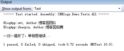 [TestMethod] public void GetAllBlogSites_Test() { _aggBlogSiteService.GetAllBlogSites().ToList() .ForEach( b => { Console.WriteLine( " BlogApp: " + b.BlogApp + " , Author: " + b.BlogUser.Author); } ); }