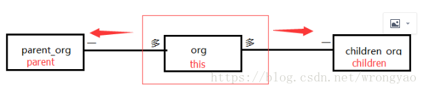 上图可知,当前的这个对象是parent的孩子,并且存在多对一的关系;当前这个对象还是children的父亲,存在一对多的关系。因此: