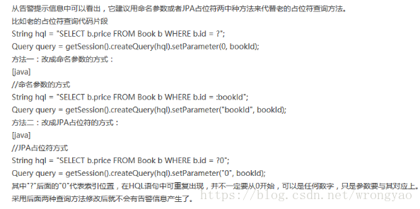 上述要注意的一个,在hibernate5.2以后,特殊类型(比如setString())已经废弃,统一由setParameter()替代,