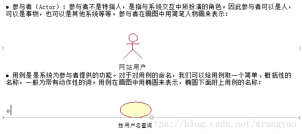 1)用例图:用例是是系统为参与者提供的功能,解决有哪些参与者,需要分别为其提供哪些功能。