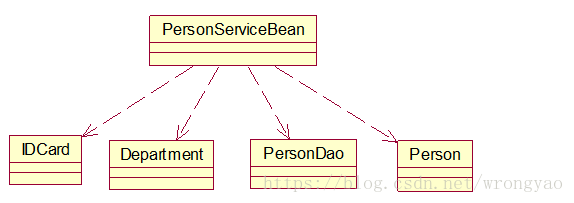 1)类之间的关系:依赖--一个对象中用到了另一个对象,没有另一个类没办法通过编译(new了一个对象)