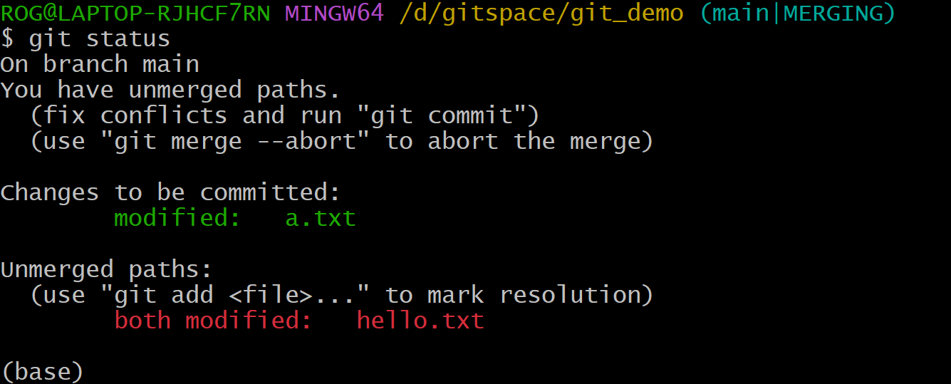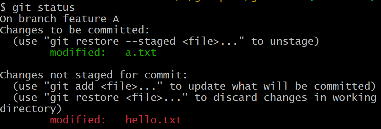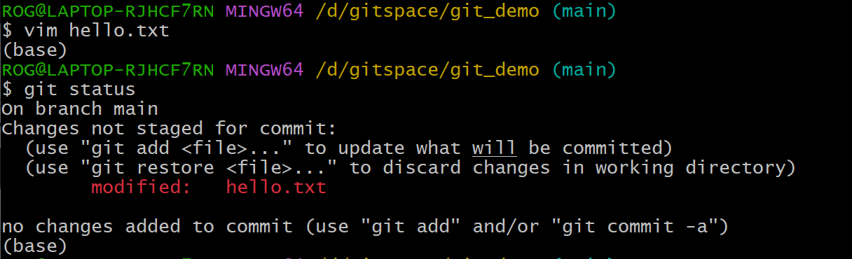 修改文件后查看状态,可以看到修改记录,但此次修改还未加入暂存区