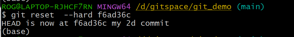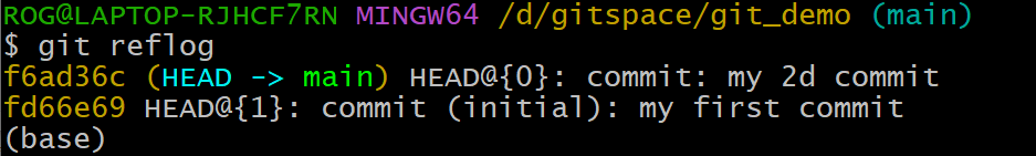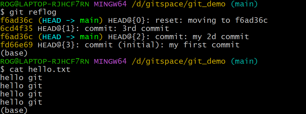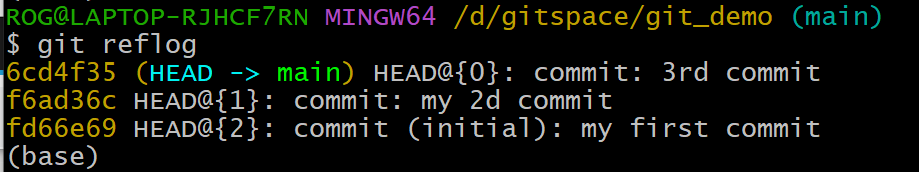 git reflog //查看版本信息(显示的版本号是精简版的)