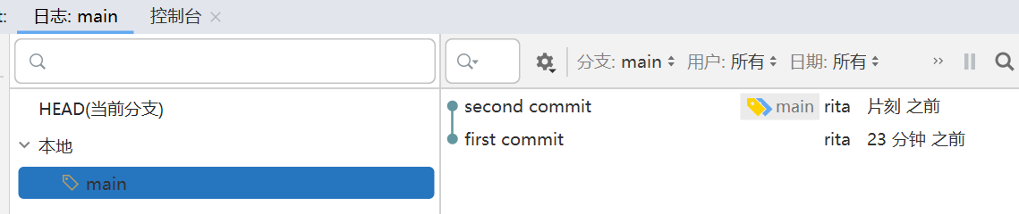 当前的HEAD指针指向main,main分支指向second版本。切换版本可以直接选定版本右键checkout