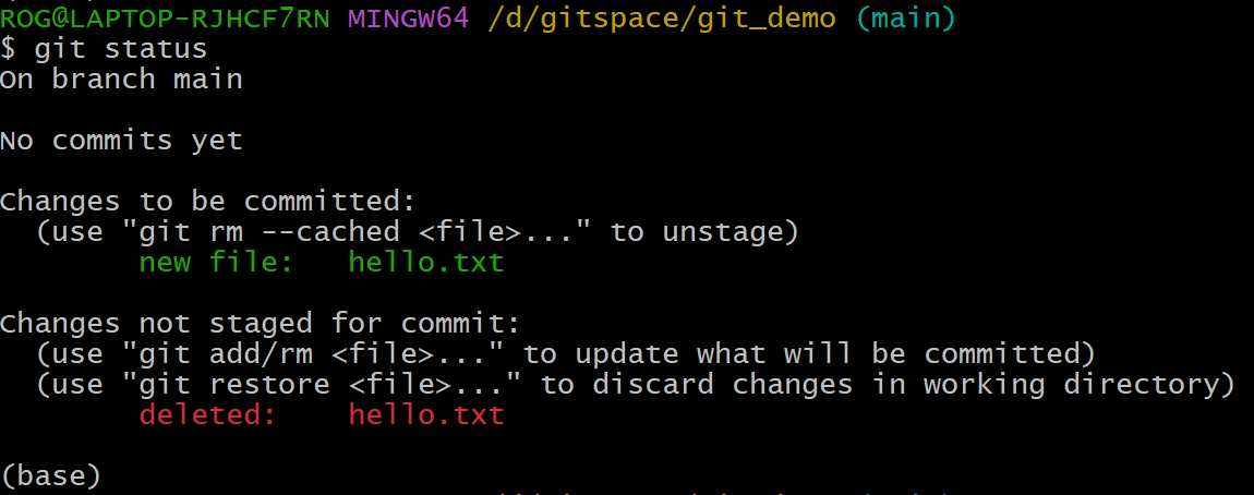 此时文件存在于工作区&暂存区。是可以删除且不显示历史版本的 (use "git rm --cached <file>..." to unstage)