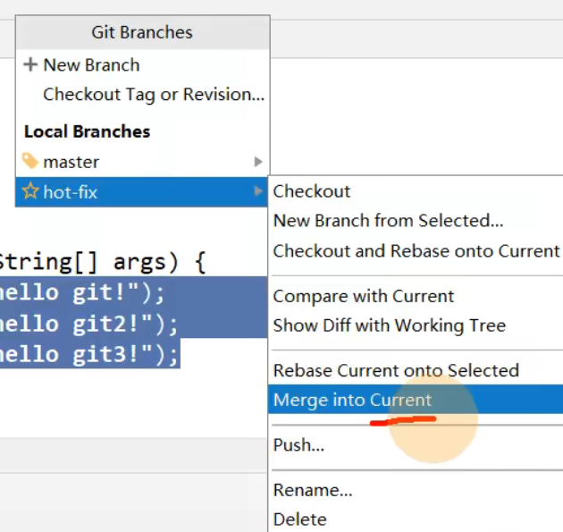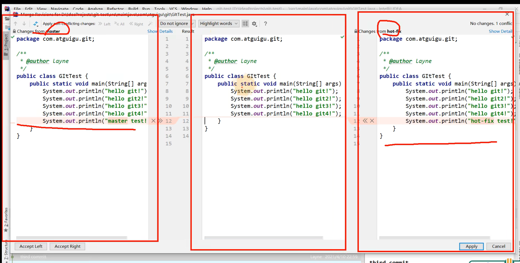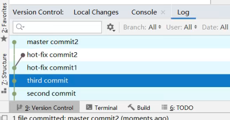 图中hot-fix master分别表示不同分支指向的版本,HEAD表示当前指针指向的分支