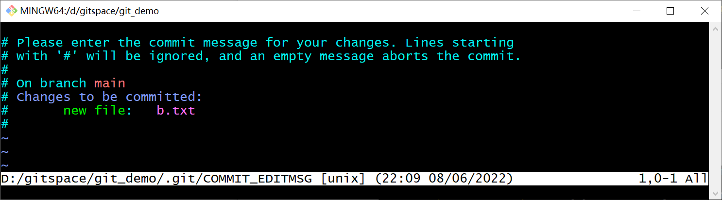 中止提交:如果在编辑器启动后想中止提交,请将提交信息留空并直接关闭编辑器,随后提交就会被中止。
