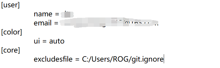 创建忽略规则文件 xxxx.ignore(前缀名随便起,建议是 git.ignore)。这个文件的存放位置原则上在哪里都可以,为了便于让~/.gitconfig 文件引用,建议也放在用户家目录下。C:\Users\ROG