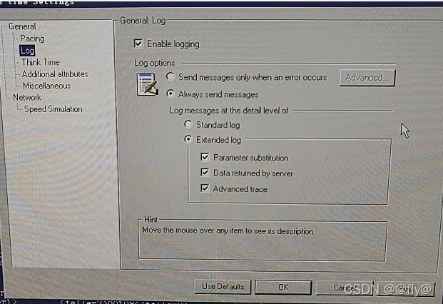 在使用loadrunner进行socket脚本编写时,经过参数化等处理后,如果需要知道自己发送的整体的报文,应该怎么获取呢?首先想到的是打印完整的日志信息,run-time setting中将详细日志打印开启(主要是第三个),emmm... 原来可以打印~