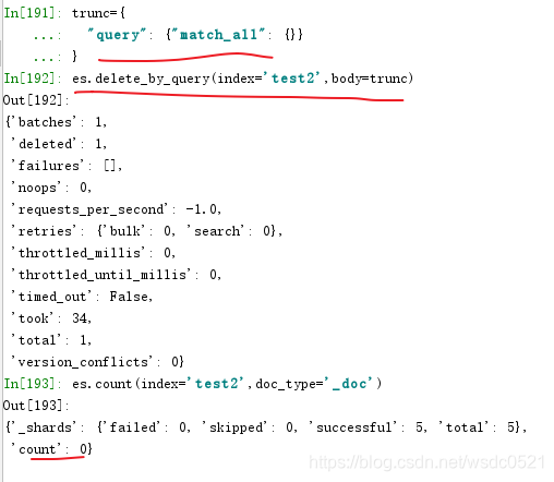 清空索引不删除索引,等同于关系型数据库里的truncate table: