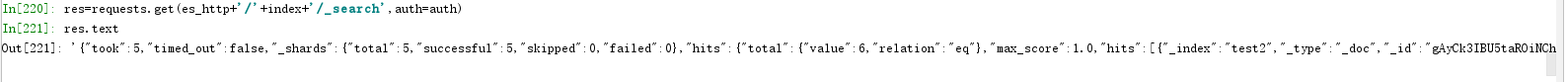 res=requests.get(es_http+'/'+index+'/_search/?pretty',auth=auth,json=bd)#pretty是为了格式化json样式,看起来更好看,可以忽略