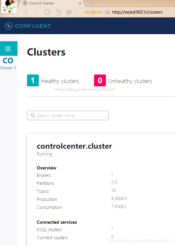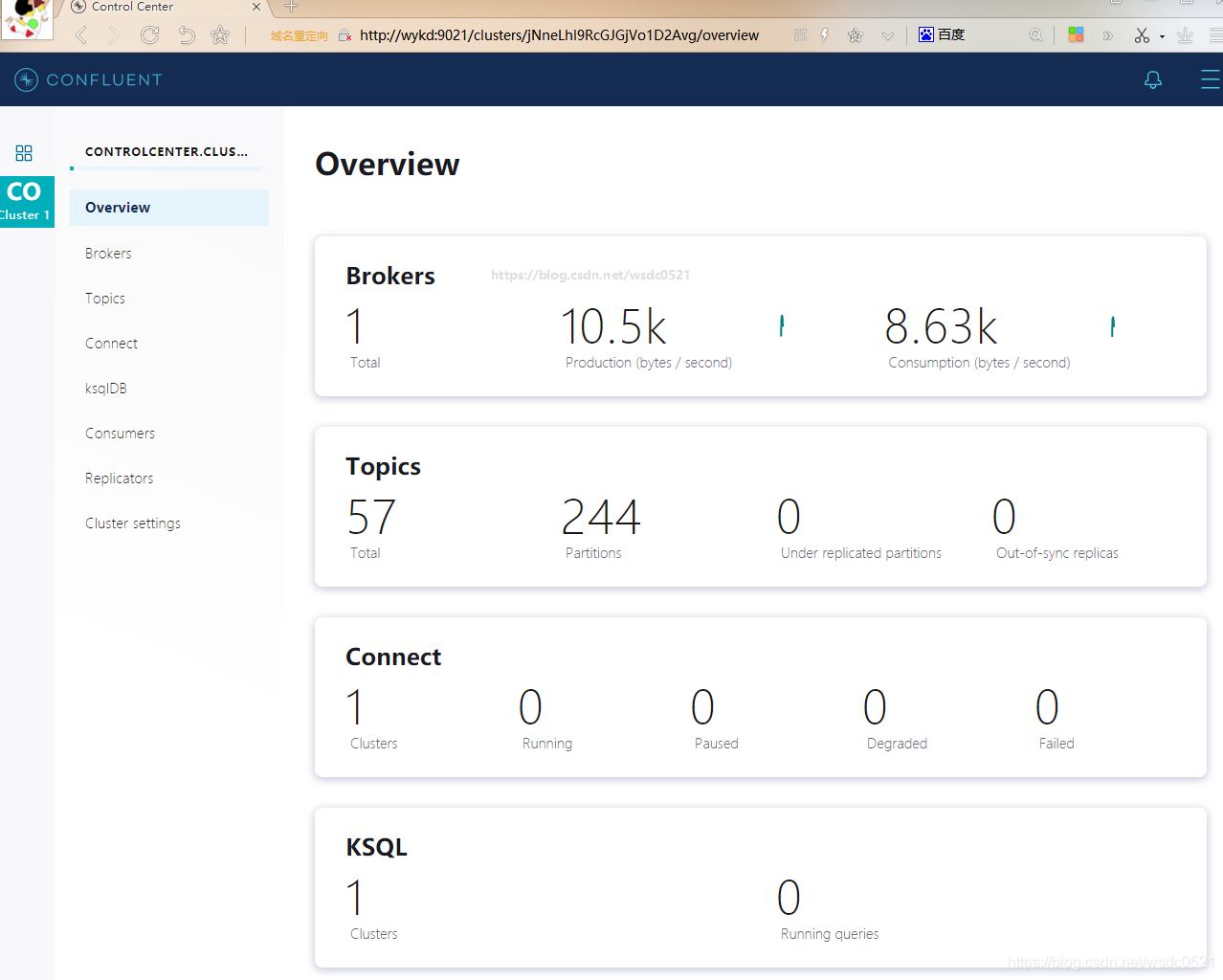 在浏览器中输入 ip:9021 即可打开Confluent Control Center界面: