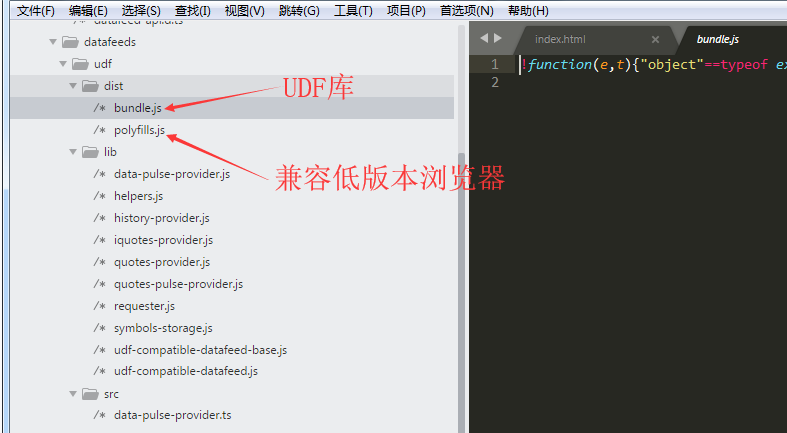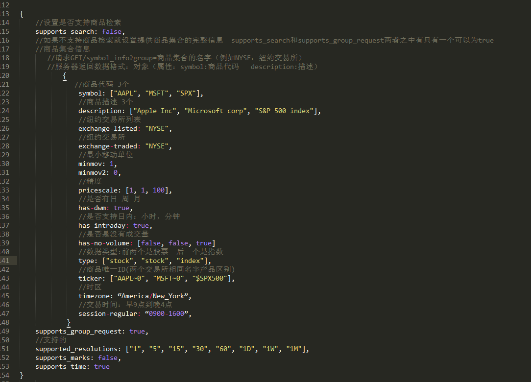 用到三个方法:onReady resolveSymbol getBars