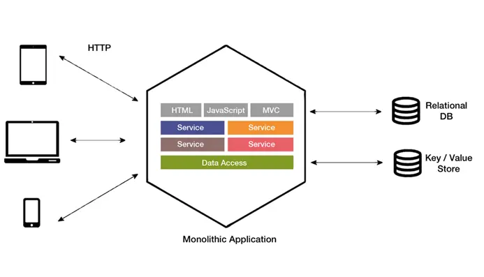 可以从上图看出,单体架构基本上就是如上所说的:一个应用,一个数据库,一个web容器,里面集成了所有的功能。这在小型项目里面时比较好维护的,毕竟功能不多,也不复杂,但扩展性和可靠性比较差,因为所有功能集成在一个服务或者一个war包中,修改某个功能时,需要所有服务重新打包。可能前期开发比较快,后期随着功能的增长,交互的周期会越变越长的。