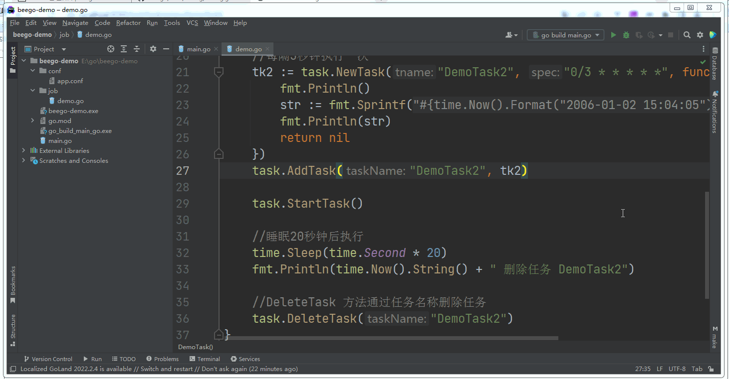 fmt.Println(time.Now().String() + " 删除任务 DemoTask2")