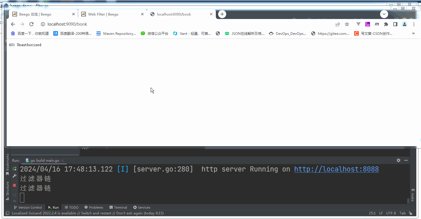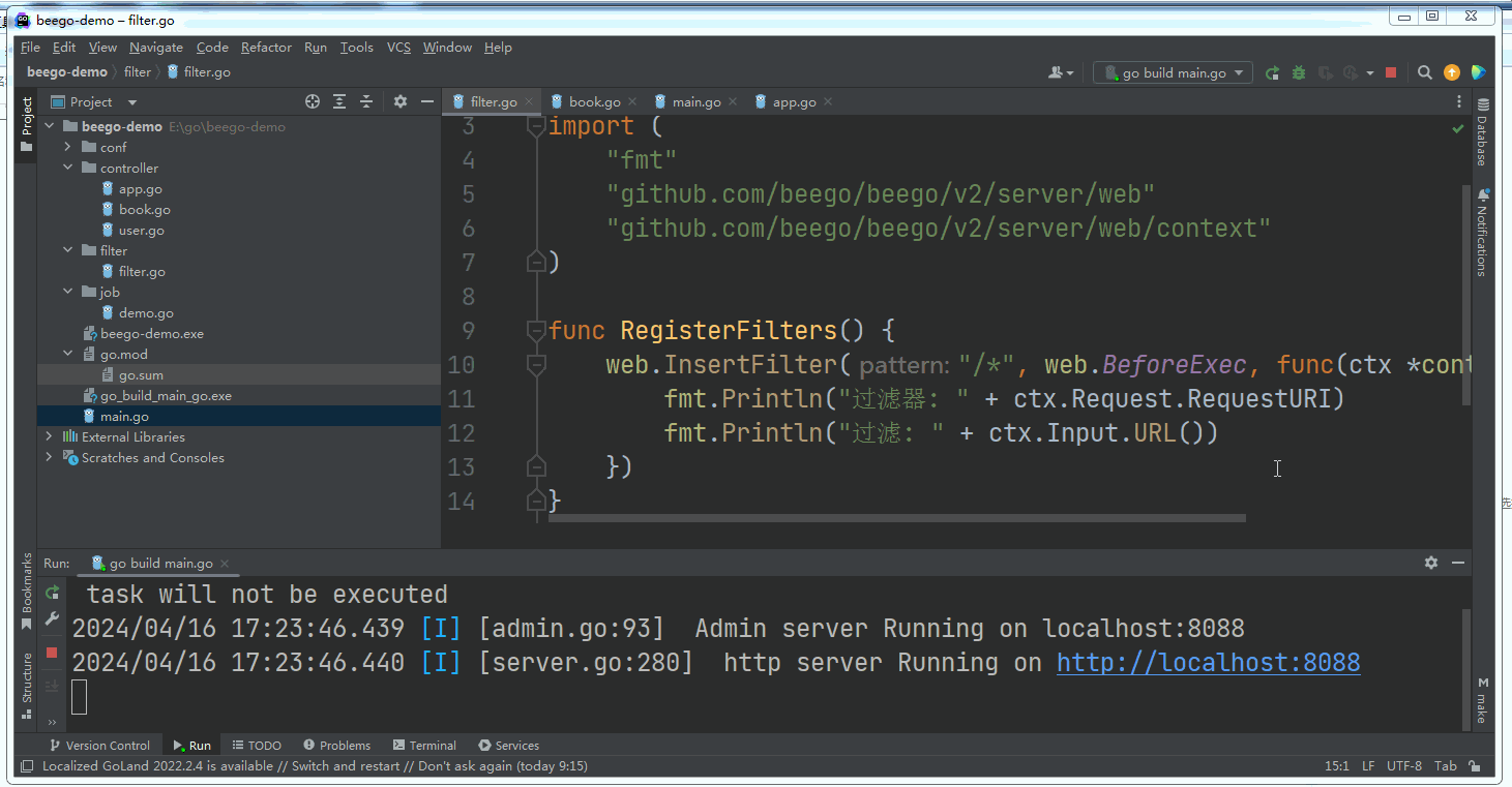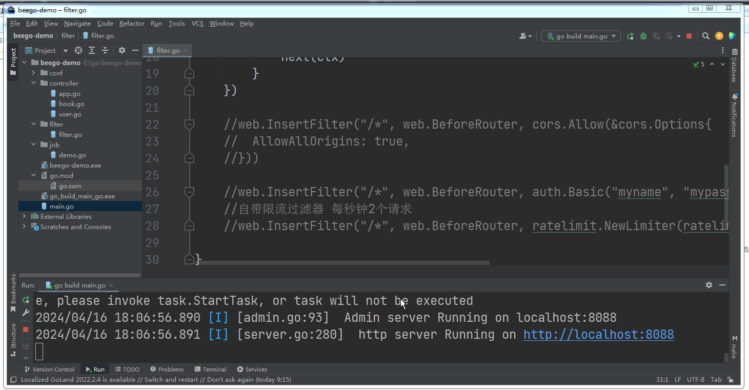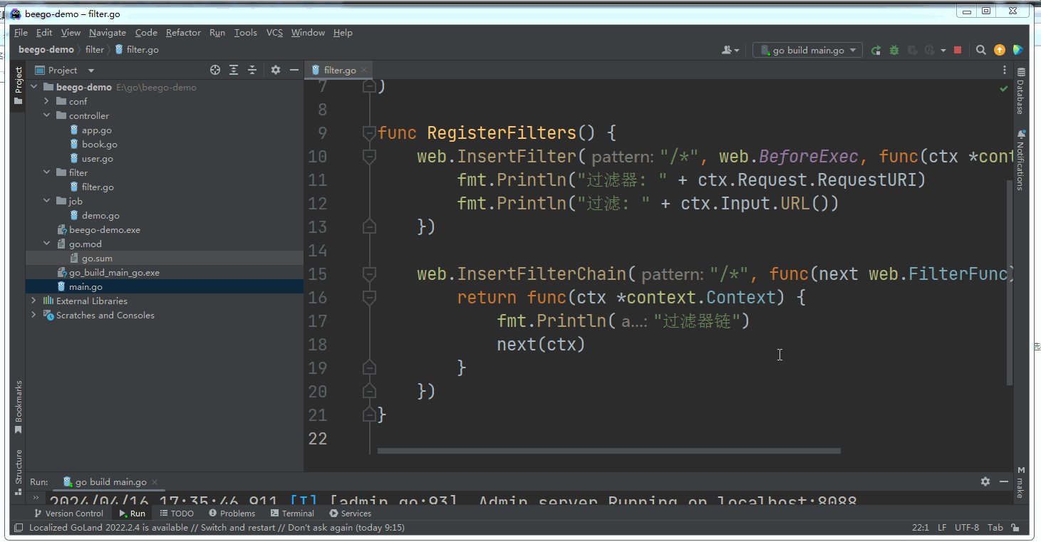 beego 提供了很多内置过滤器,如请求验证过滤器、限流过滤器等等,这些过滤器内在逻辑 beego已经实现完了,我们想用的话直接添加即可
