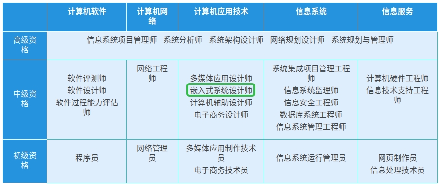 通过本考试的合格人员能根据项目管理和工程技术的实际要求,按照系统总体设计规格说明书进行软、硬件设计,编写系统开发的规格说明书等相应的文档;组织和指导嵌入式系统开发实施人员编写和调试程序,并对嵌入式系统硬件设备和程序进行优化和集成测试,开发出符合系统总体设计要求的高质量嵌入式系统;具有工程师的实际工作能力和业务水平。