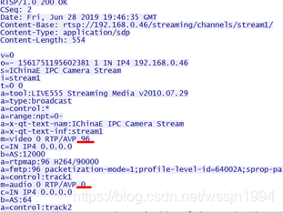 a=rtpmap:96 H264/90000//若m的[fmt list]填写了自定义编号,则在这里指定自定义编号的编码类型和时钟速率,h264为90000