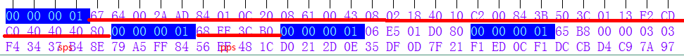 - 若码流中有0x00,0x00,0x00,0x01,0x*7则从0x*7算起为sps,sps长度为sps位置减去pps的头00000001的位置