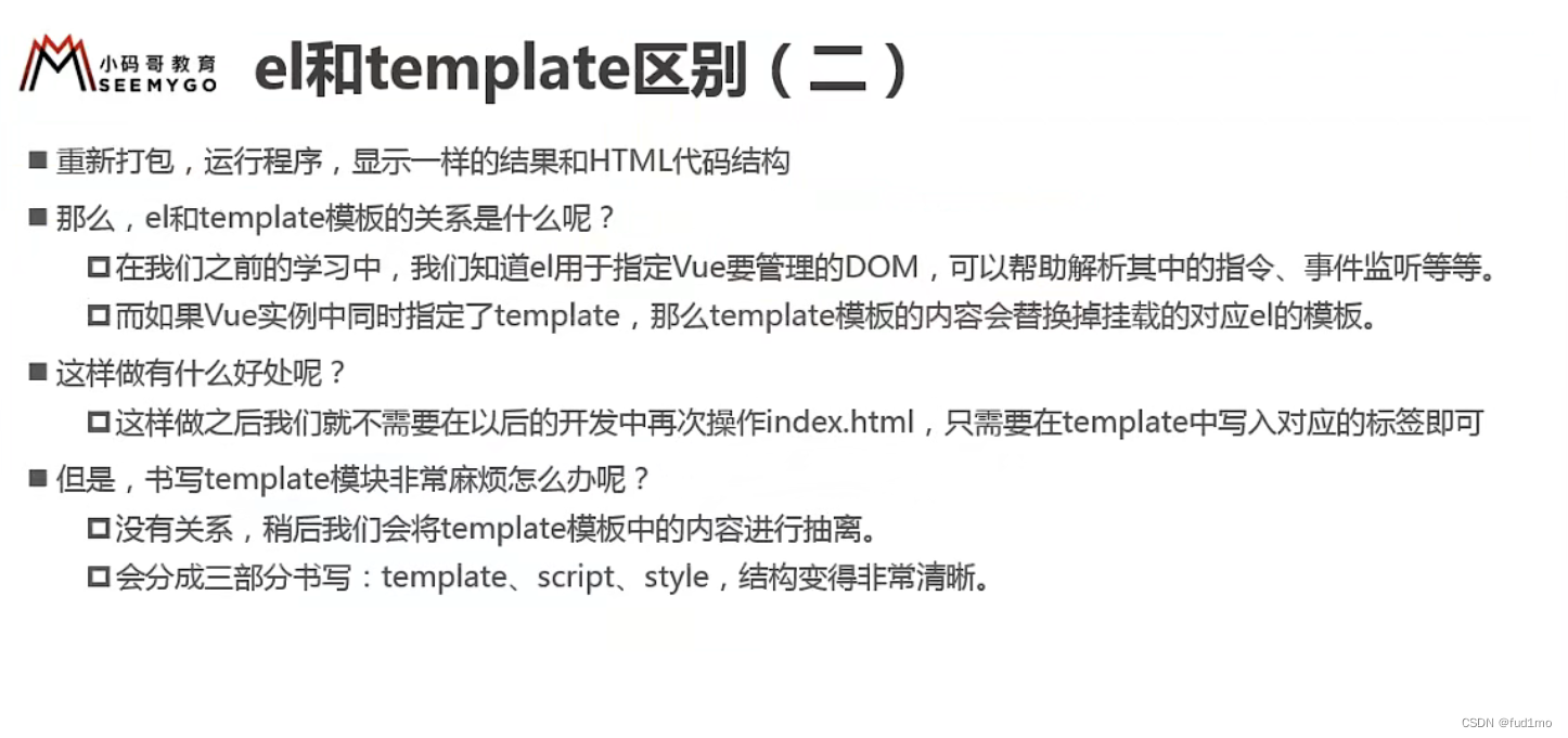 本文探讨了在Vue项目中,当同时使用`el`和`template`时,`template`如何覆盖`el`的内容。此外,还介绍了Webpack配置的开发与发布环境分离,通过不同的配置文件适应不同阶段的需求,确保开发和部署的效率与优化。
