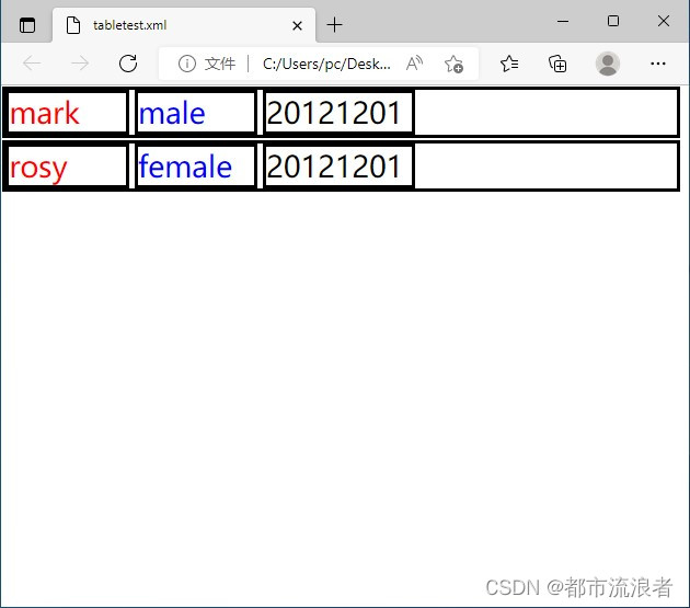 本文展示了如何利用CSS将XML文件内容模拟显示成表格形式,通过定义不同的样式来呈现Student、Name、Gender和Birthday等元素,实现清晰的布局效果。在微软Edge浏览器中可以看到最终的显示结果。
