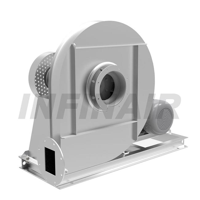 英飞高压单进风风机:YFBCSU、YFBCSO主要针对高阻力、小流量场景设计,如含尘气体处理、钢铁行业鼓风等,强调耐腐蚀、耐磨损性能。蜗壳采用了“渐扩式”流道设计,可以减少压力损失,满足多点位除尘系统、电厂锅炉引风等场景。整机采用304不锈钢叶轮,耐轻度酸碱腐蚀,适配电镀车间、印染厂的轻度污染气体输送;同时,可选隔爆电机(ExdIIBT4Ga),符合化工车间、喷涂厂房等防爆需求,安全系数拉满。举例:某汽车零部件厂用YFBCSO搭配10个焊接工位除尘点位,粉尘收集效率达98%,年节电超1.5万元,同时减少滤芯更换频率。