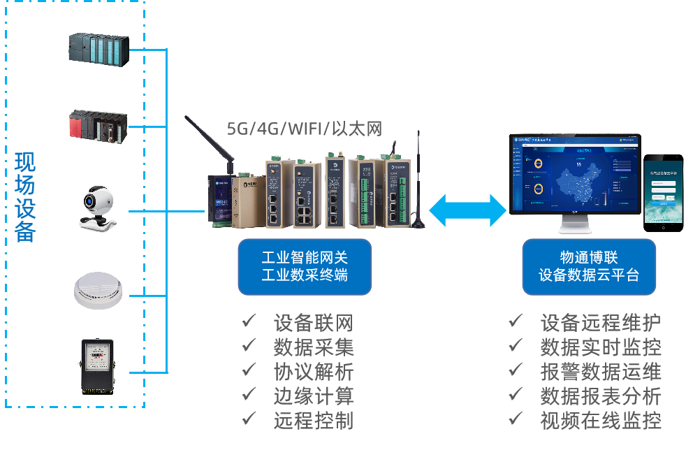 2、支持采集各种PLC,仪器仪表,水环保,电力设备,CNC等各种工业设备数据,具有协议解析,边缘计算的高可靠性工业智能网关,实现不同场景的设备接入。