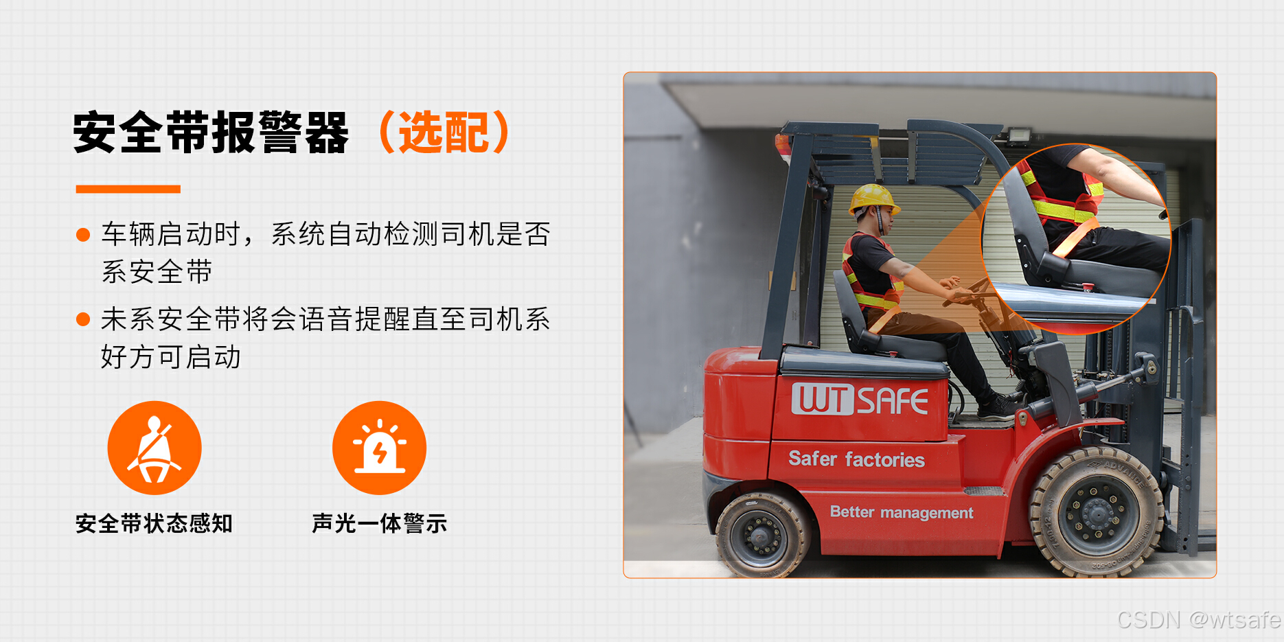 系统具备安全带监测功能,驾驶员未系安全带时,叉车无法启动,并发出报警提示,确保驾驶员在作业过程中佩戴安全带,提高安全性。