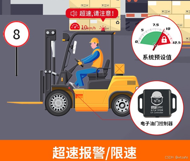 超速限速报警管理:预先设置好超速限速值,一旦叉车速度超过设定值,系统立即发出警报,甚至进行制动限速,并记录事件。