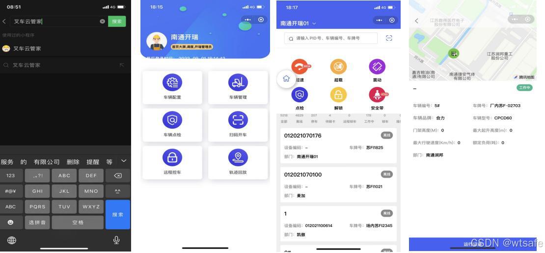 叉车安全数字化监管 PC 平台:涵盖人员信息 / 车辆信息录入、人员权限管理、安全带违规记录、车辆点检、电子围栏设置、超速违章事件报警、驾驶员车辆年审提醒、GPS 车辆定位与轨迹追踪、数据分析及效率报表统计、API 数据对接以及本地化部署服务等功能。
