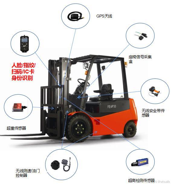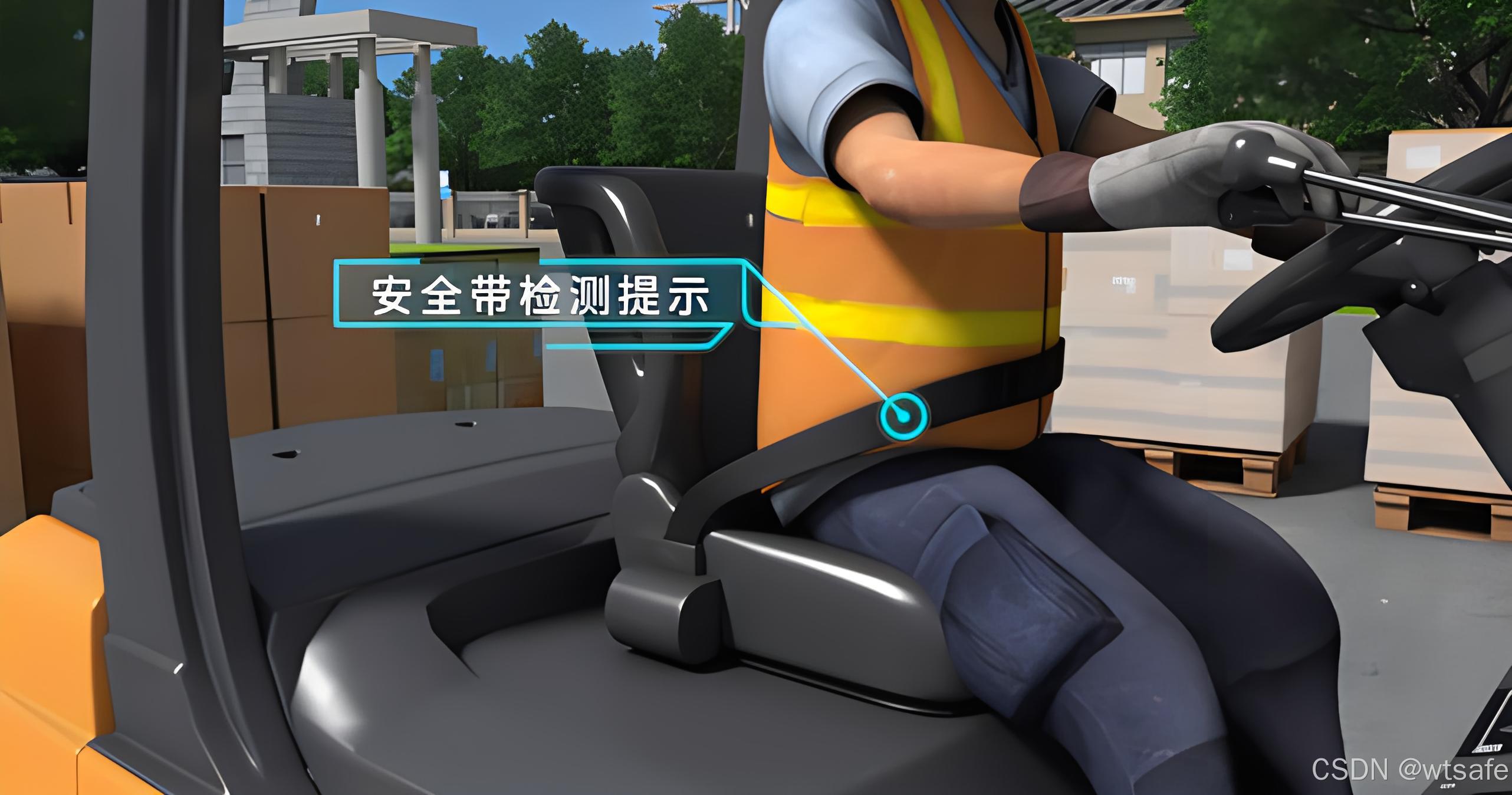 安全带感知采集监测:驾驶叉车前,司机必须佩戴安全带,否则系统将发出警告,并把相关事件信息上传至记录平台。