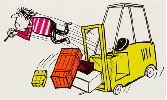 某工厂内,叉车司机为了赶时间,在转弯时没有减速,导致叉车侧翻,车上的货物散落一地。其中一件重物砸到了旁边的工人,造成工人腿部骨折。事后调查发现,司机明知转弯需要减速,但为了提高效率而选择冒险,最终酿成了事故。