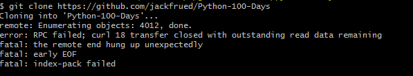 error:RPC failed;curl 18 transfer closed with outstanding read data remaining...