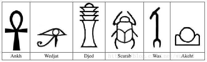 3000多年前在埃及使用的一种这样的语言是基于称为象形文字的字符。图 1 显示了六个象形文字及其名称。在这个问题中,你将编写一个程序来识别这六个字。
