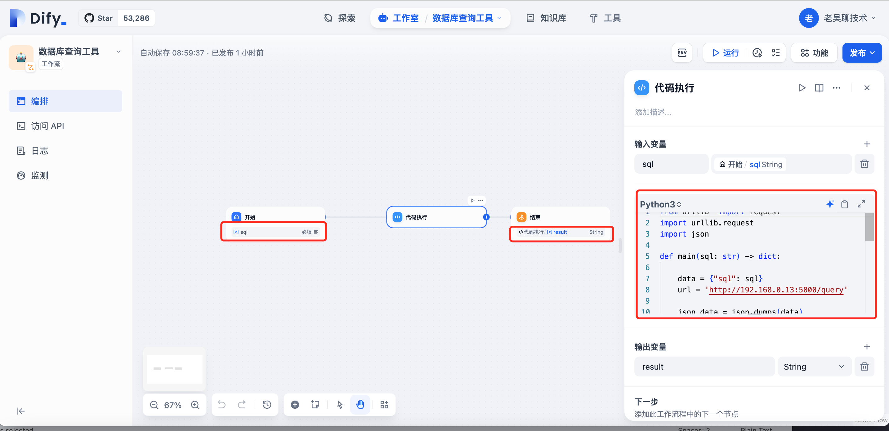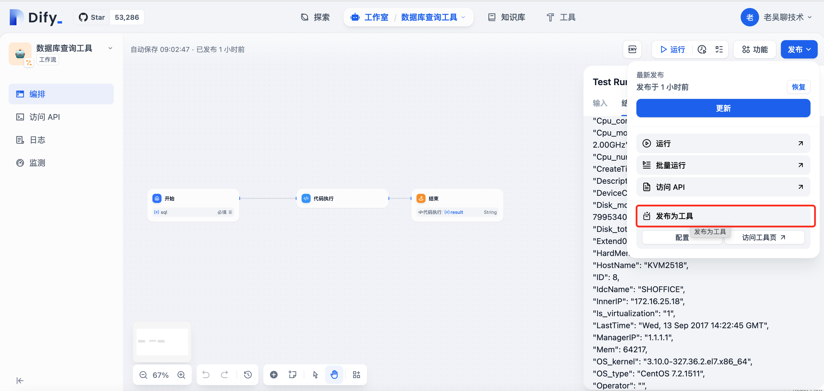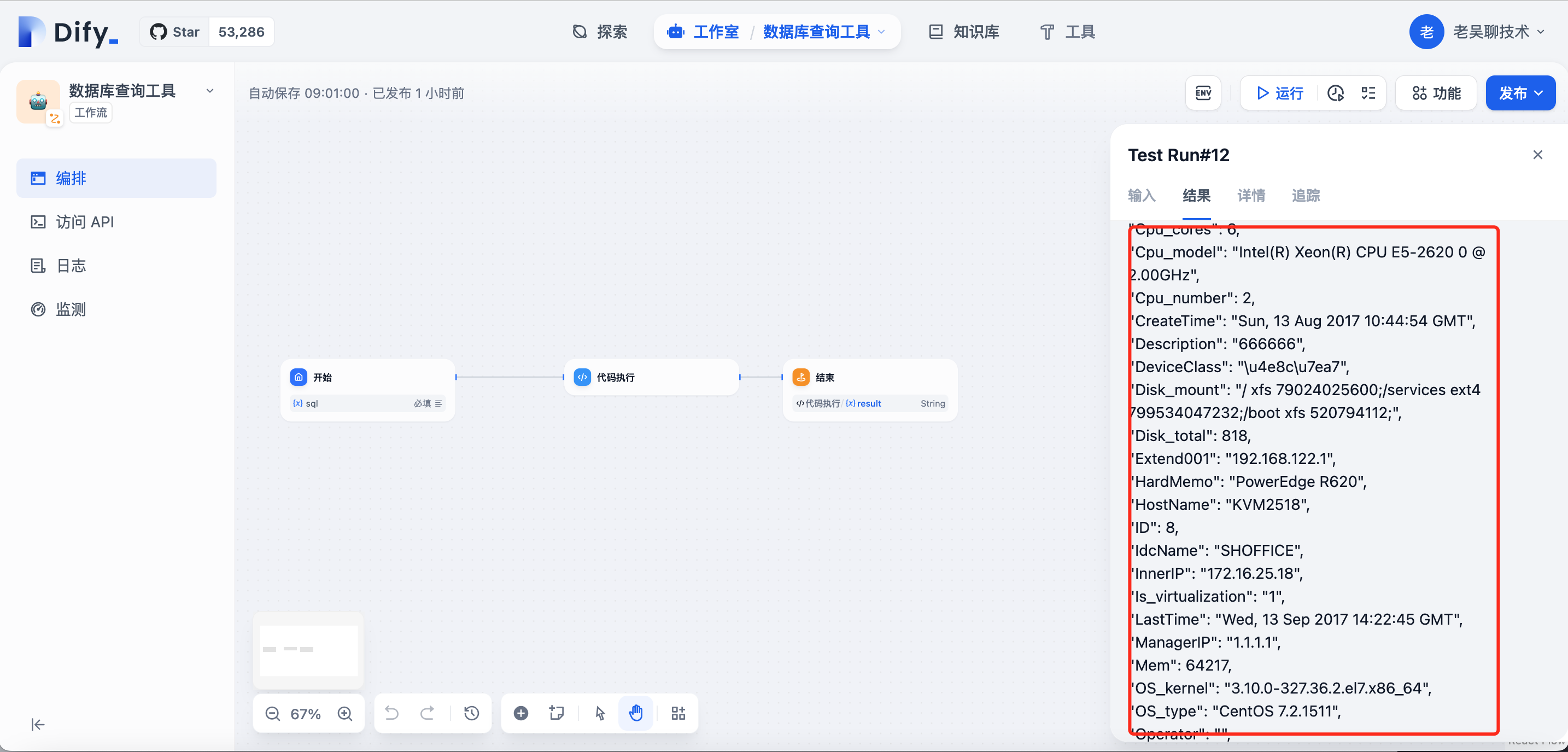 (base) root@ubuntu:~# curl -X POST "http://127.0.0.1:5000/query" -H "Content-Type: application/json" -d '{"sql": "select * from host limit 1;"}'