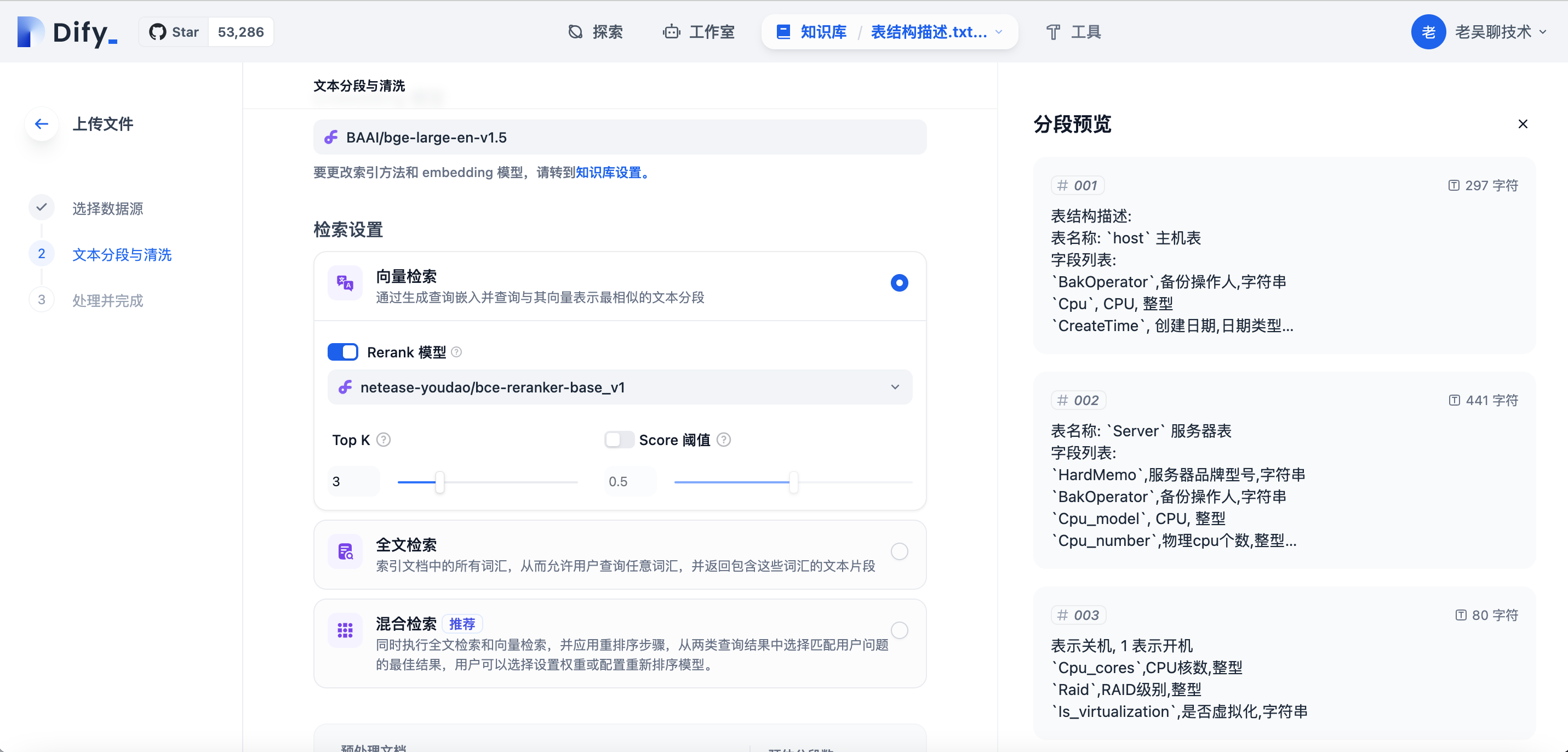 3、根据用户输入的内容和上下文信息,形成一个符合用户意图的完整问题,以此作为输入在知识库“sql示例”中检索SQL语句参考示例