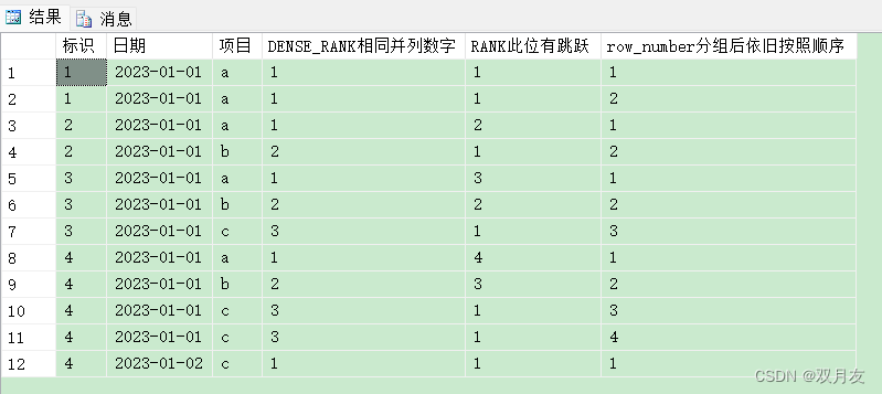(DENSE_RANK() over(partition by 标识,日期 order by 项目)) DENSE_RANK相同并列数字,